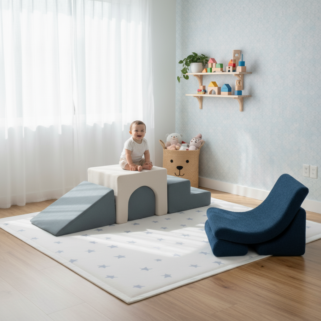 Suma el recorrido de escalera, túnel y rampa, diseñado para estimular el cuerpo, la curiosidad y la confianza. Cada subida, bajada y carcajada cuenta como desarrollo (y diversión garantizada).